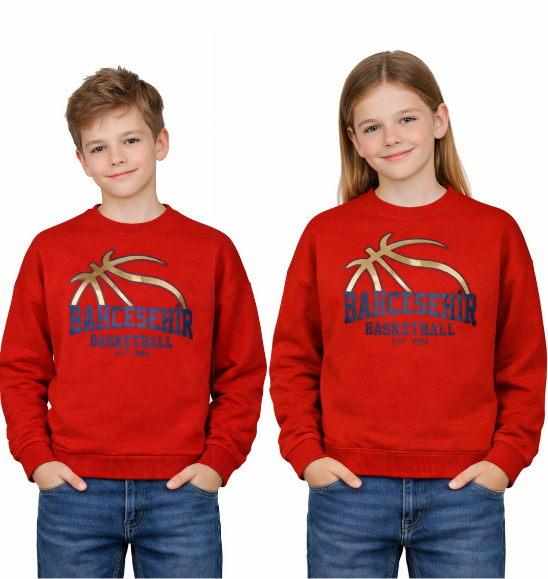 🔴 Bahçeşehir Basketball Logolu Sweatshirt: Renklerin Enerjisi Okul Stilinde!