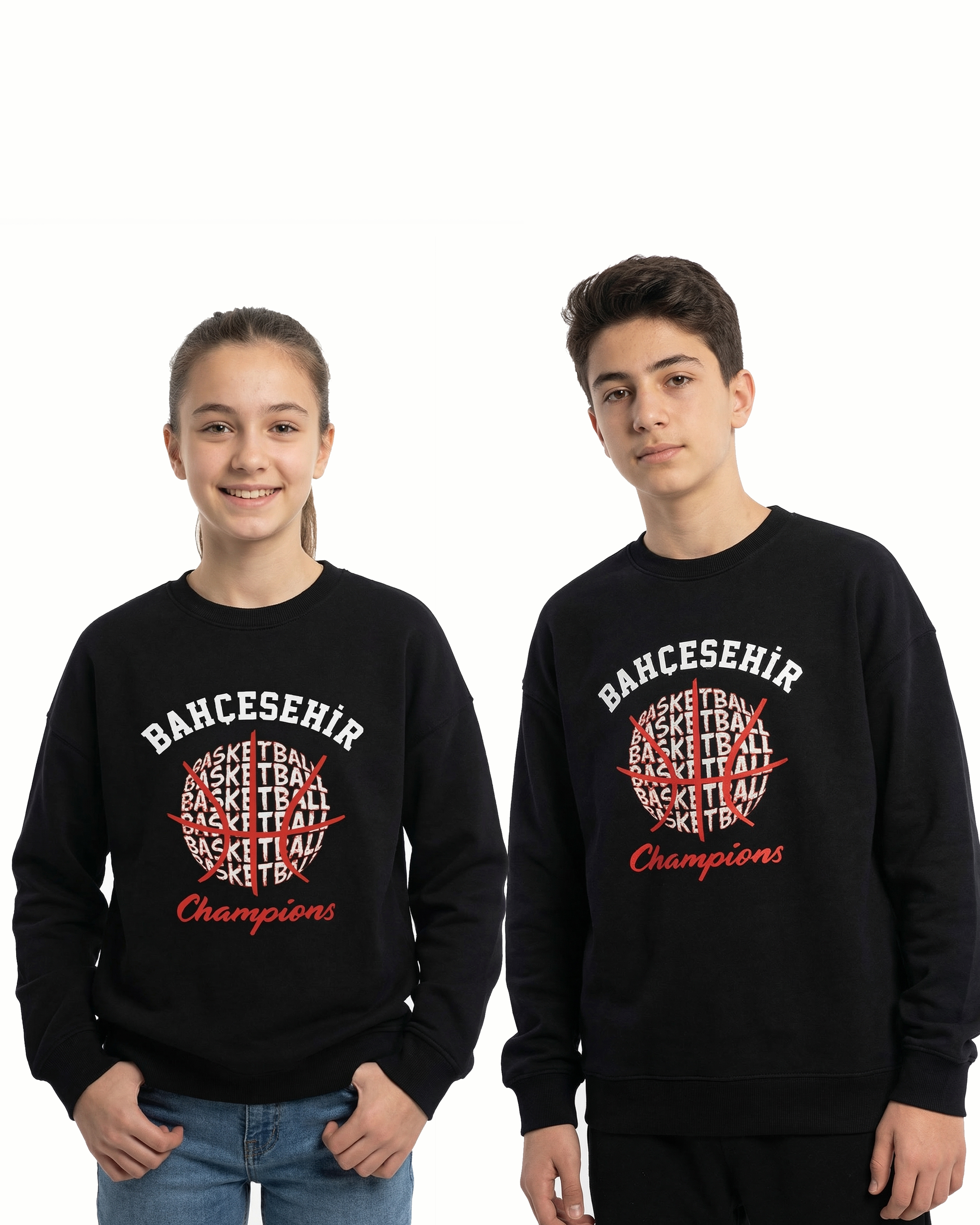 Bahçeşehir Koleji’nin basketbol sahalarındaki başarılarını ve şampiyonluk ruhunu yansıtan bu özel tasarım siyah sweatshirt, hem stiliyle hem de konforuyla fark yaratıyor. ✨ Sahadaki şampiyon duruşunu günlük okul hayatına taşı! 🚀